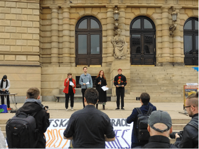 Řečnili i lidé z hnutí Fridays for Future. Ti vyjádřili nespokojenost se sliby premiéra Petra Fialy /ODS/, který sliboval, že bude dbát na budoucnost. „Tyto sliby nevydržely dlouho. Několik měsíců po nástupu do funkce vyměnil podzemní vodu českých občanů, v okolí dolu Turów, za dobré vztahy s konzervativním Polskem,“ prohlásila řečnice Klára Bělíčková. Dále nejsou spokojeni s nedostatečnými kroky vlády proti fosilním palivům a neochotou diskutovat, i když jí podle svých slov „strká návrhy pod nos.“