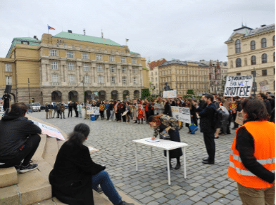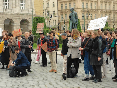 Studentská demonstrace proběhla ve čtvrtek 18. května na náměstí Jana Palacha před Rudolfinem. Začala s patnáctiminutovým zpožděním, nicméně i tak se akce zúčastnilo více než sto lidí.