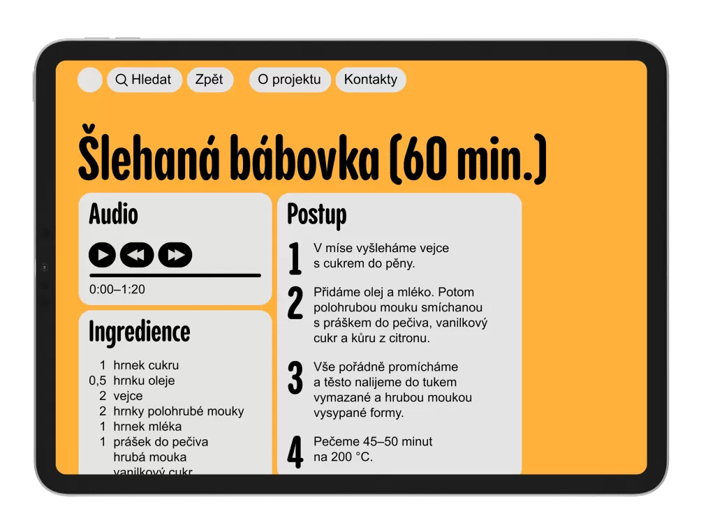 Skutečně unikátní počin se povedl dvojici studentů z pražské UMPRUM. David Novák a Ondřej Mazanec z Ateliéru grafického designu a vizuální komunikace představili jedinečnou online kuchařku, která je primárně určena pro lidi se zrakovým postižením.