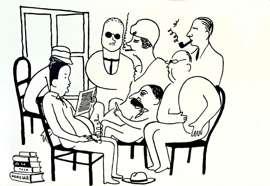 Čapek byl jednou ze zakládajících osobností československého PEN klubu. Do klubu mohli vstoupit pouze ti, kteří ,,vládnou perem‘‘, tedy esejisté, editoři, romanopisci, novelisté, básníci a dramatici. Jedná se o organizaci, která si dala za úkol bránit lidská práva a zároveň propagovat přátelství a intelektuální spolupráci mezi spisovateli bez ohledu na to, kde žijí. Právě PEN klubu je věnována významná část výstavy.