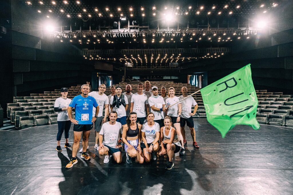 Běžci dále pokračovali k Nové scéně Národního divadla. V tomto případě Prager použil unikátní technologii založenou na na zavěšení obvodového pláště z horniny podobné mramoru. Díky skleněným tvarovkám, které slouží jako zvuková bariéra, si mohou diváci uvnitř divadelního sálu užívat kvalitnější divácký zážitek.