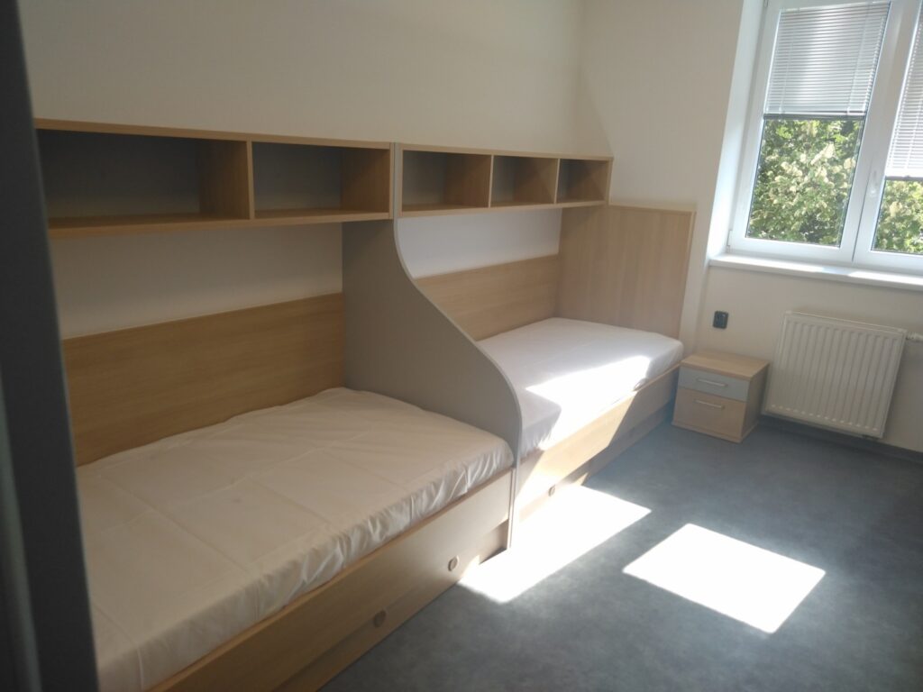 Pro studenty s omezenou schopností pohybu jsou určeny dvě nové buňky disponující pokojem pro imobilní osobu, pokojem pro asistenta a předsíňkou.
