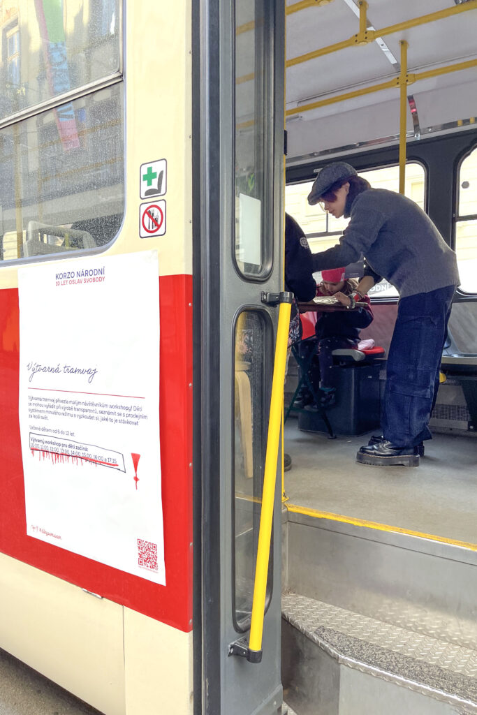 Stejně jako na minulých oslavách, ani letos nechyběla kulturně-vzdělávací tramvaj se symbolickým číslem 89. Tento rok k ní ale přibyly i dvě další, konkrétně čísla 17 a 11, které byly určeny pro nejmenší návštěvníky. Děti si tam mohly vytvořit například tématicky transparent podobný těm, které měli studenti v roce 1989.