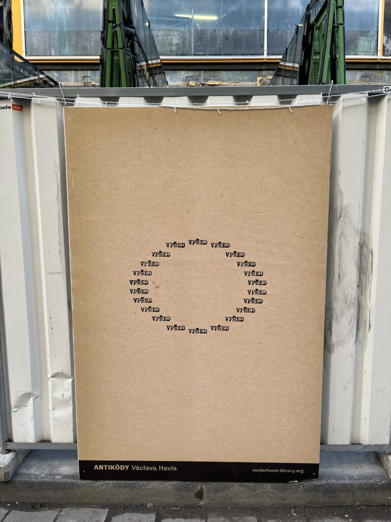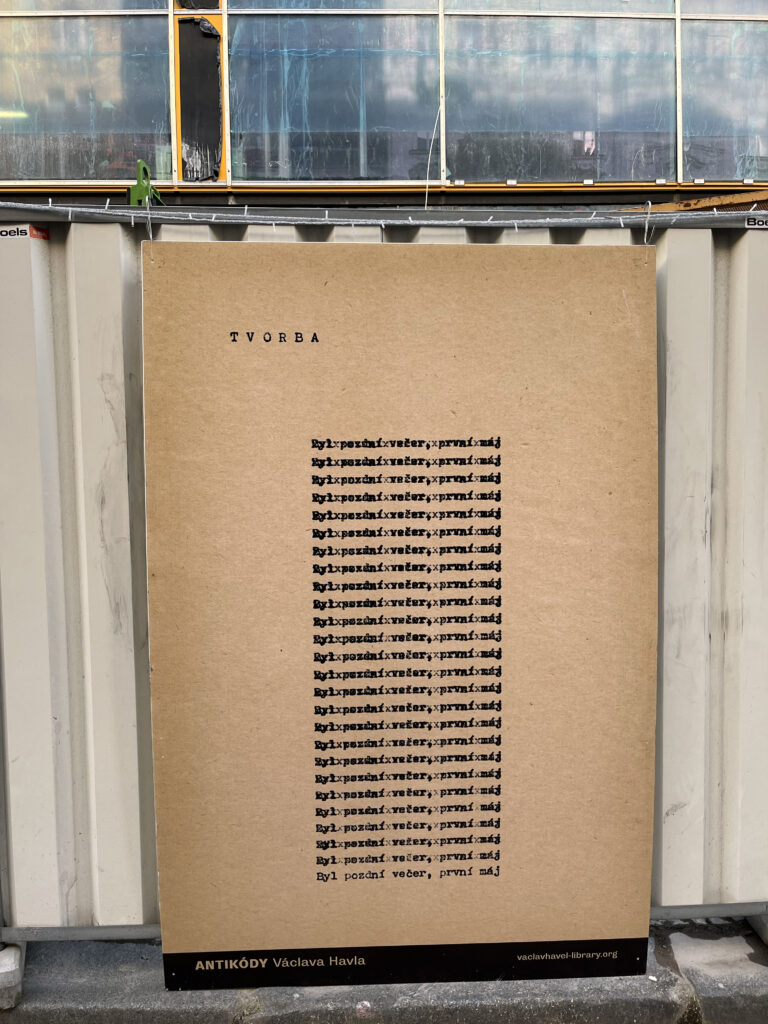 Na Národní třídě byly k vidění i ukázky z literární tvorby Václava Havla. Některé z nich pocházely z jeho básnické sbírky Anitkódy, která vyšla poprvé v šedesátých letech minulého století. Knihu věnoval Havel Jiřímu Kolářovi, českému umělci a básníkovi, který se proslavil především skrz své koláže. Kniha obsahuje experimentální poezii, ale také tzv. Kaligramy, oblíbenou formu avantgardních básníků.