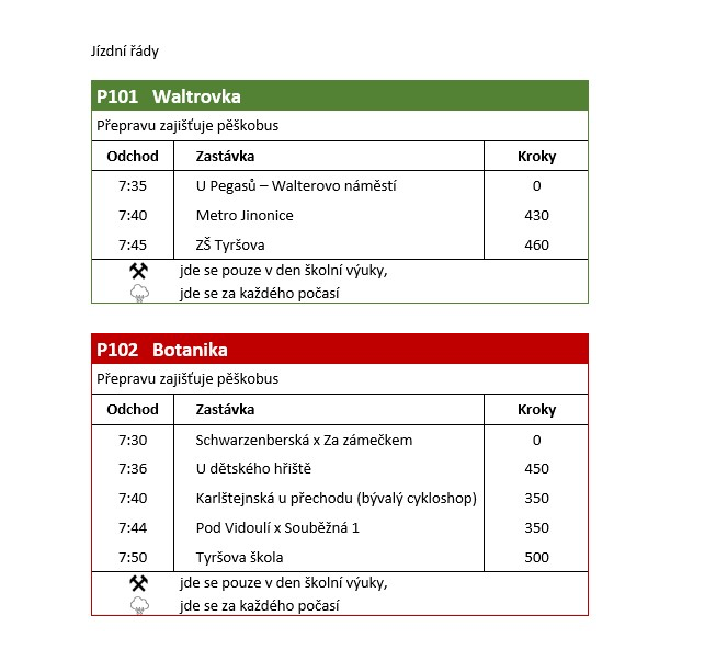 Jízdní řády pěškobusů:
