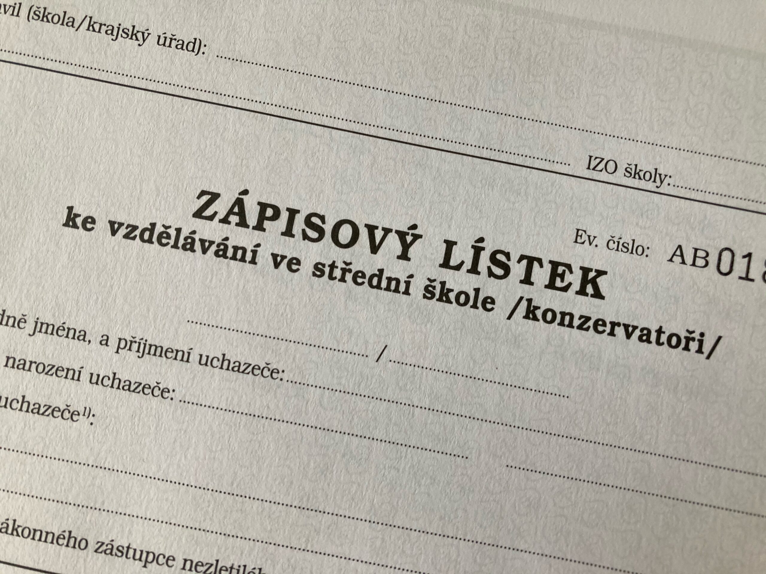 Přihláška ke vzdělávání na střední škole se podává na předepsaném formuláři, který naleznete na webových stránkách MŠMT (https://www.msmt.cz/vzdelavani/stredni-vzdelavani/prijimani-na-stredni-skoly-a-konzervatore) nebo ji můžete zakoupit v prodejnách tiskopisů SEVT. V případě nezletilého uchazeče je součástí přihlášky jeho souhlasné vyjádření. Základní škola potvrzuje prospěch uchazeče na přihlášce a vydává a eviduje zápisové lístky.