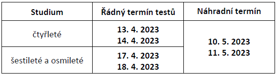 Pro obory vzdělání s výučním listem se konají přijímací zkoušky v období od 22. dubna do 30. dubna 2023, nebo se zveřejňují výsledky, pokud se přijímací zkouška nekoná.