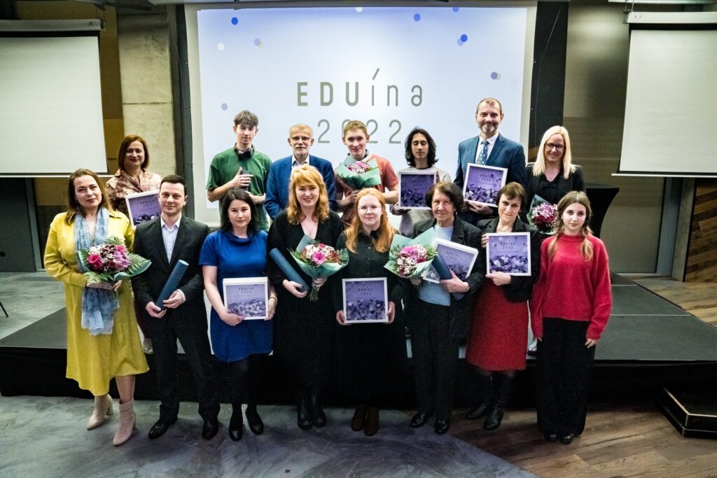 Cenu EDUína letos získal projekt Člověka v tísni, organizace Locika a organizátoři nultých ročníků pro ukrajinské žáky devátých tříd. Do Auly slávy tento rok vstoupila dlouholetá ředitelka základní školy Hana Vellánová. EDUína také prošla proměnou koncepce.