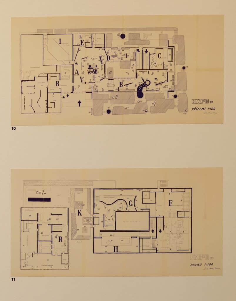 Expozice se zabývá také ikonickými českými stavbami a projekty, které vznikly v poválečné éře. Jmenujme například Novou scénu Národního divadla, výstavbu první stanice metra nebo realizaci domu ČKD na Václavském náměstí. Každému významnému dílu je věnován banner, na němž jsou vystaveny architektonické plány, dobové fotografie exteriérů i interiérů budov, ale i celkové modely, které nám umožňují si stavbu více představit.